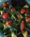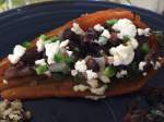 Sprinkle the insides of the peppers with a little sea salt. Now it’s time to stuff your peppers! The roasted peppers are fragile, so be careful not to tear them while stuffing. I’m ok with overstuffed peppers; it’s fine if you can’t close the peppers. Spray an 8×8 baking dish with pan spray. Nestle the unstuffed peppers together in the dish, stuff them and then cover the dish with foil. Bake at 350 degrees for 20 minutes, then remove the foil and sprinkle liberally with goat cheese. Bake for another 10 minutes so the cheese is soft. Shower with minced jalapeño and eat hot.